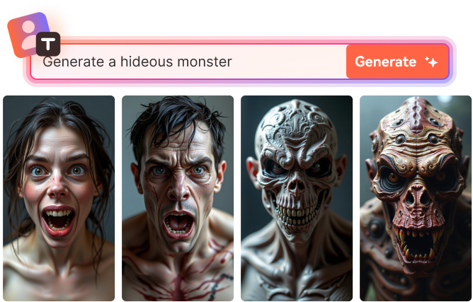 We understand the pains you may have to go through to generate AI images online. Finding an AI program to create top-quality photos can be tricky, especially involving intricate artworks like AI monsters. Thankfully, our AI image generator can lessen the burden by allowing you to create stunning monster photos in different styles with simple text inputs. You only need to describe how you would want your monster to look in a few words and choose a style from various generated options. You don't need any drawing or image editing skills to create an AI-generated monster. It's the best AI image generator you can find.