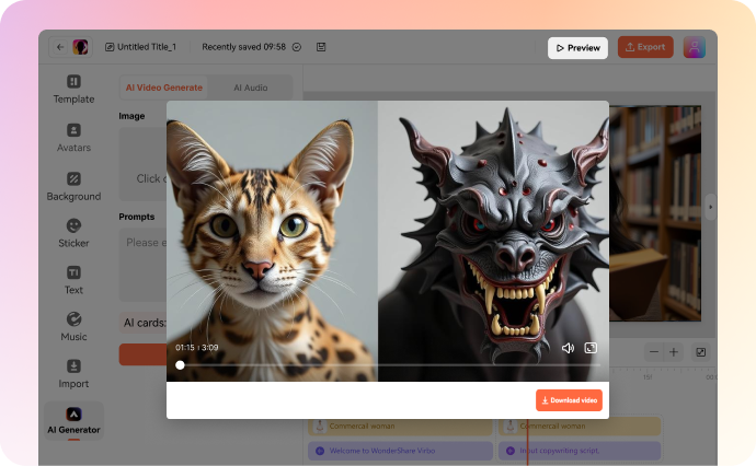 Do you need to create a desert-dwelling or fire-breathing dragon? Or do you want to break free from one-dimensional goblins and ogres to add more creativity to your storytelling? Our AI monster generator is the ideal tool for you. With it, you can create a one-of-a-kind beast tied to ancient lore and magical systems with a single text prompt. You can use the generated monsters to lay the foundation for your storybook or adventure. At the end of the day, Virbo AI can help you break creativity blocks and save time when designing new monsters or reskinning existing ones. Want to try one out? Go ahead!
